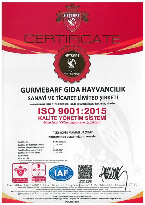Üretimimiz, uzman çalışan kadromuzun titiz çalışmasıyla, en yüksek hijyen standartlarında gerçekleştirilmektedir. Gıda, Tarım ve Hayvancılık Bakanlığı’nın sıkı kontrol ve denetimlerine tabi tutularak, her aşamada kalite ve güvenlik garantisi sunuyoruz. Patili dostlarımız için daha iyiye ulaşma arzusuyla dolu olduğumuzu bilmenizi isteriz. Sevgiyle, emekle ve özenle… Hep daha iyisi için!