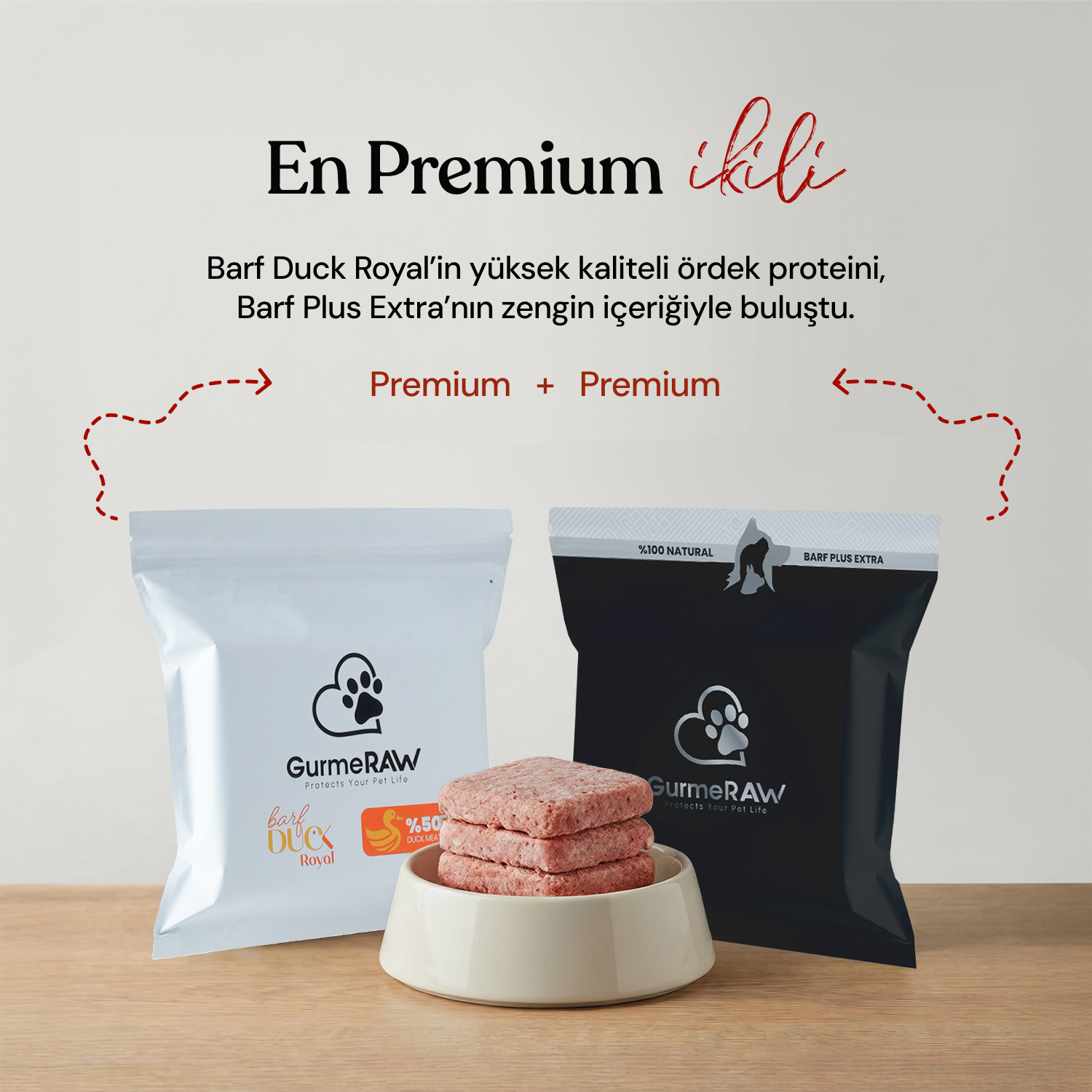 Barf Duck Royal + Barf Plus Extra yarı yarıya paketi, iki premium formülü bir arada sunarak en kapsamlı çiğ beslenme deneyimini sağlar. Barf Duck Royal'ın %50 ördek eti, beşeri kalite sakatatlar ve düşük alerjenik yapısı, hassas köpekler için güçlü bir koruma sunarken; Barf Plus Extra'nın artırılmış et oranı, nitelikli sakatatlar ve doğal takviyelerle zenginleştirilmiş formülü en geniş besin çeşitliliğini sağlar.
