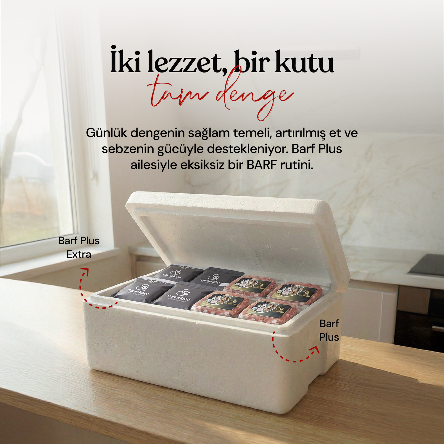 Genel olarak, üretiminde tahıl–sebze oranı yüksek ve et oranı düşük olan kuru mamaların aksine, et oranı daha yüksek, tahıl–sebze oranı minimum olan beslenme tarzına barf beslenme denir. Kedi ve köpeklerin etobur yapısı düşünüldüğünde, et ağırlıklı barf diyeti, doğal biyolojik beslenmeye son derece uygundur. GurmeRAW ürünlerinde hiçbir kimyasal, koruyucu, renklendirici ve tahıl kullanılmamaktadır.