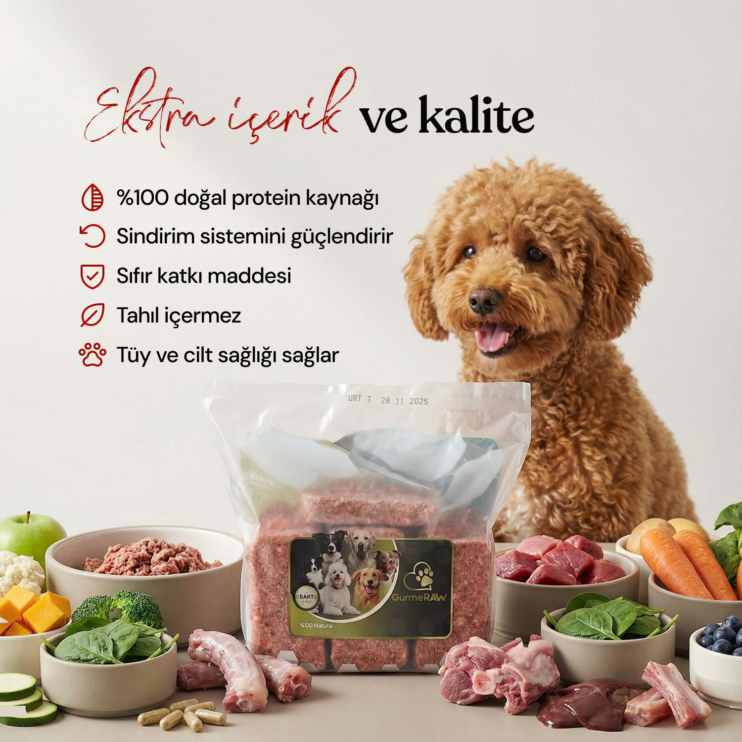 GurmeRAW olarak tüm hayvanların sağlığını önemsiyoruz. Köpeklerin severek tükettiği GurmeBARF köpek mamaları, dostlarınızı güvenle beslemenin en doğal yollarından biridir.